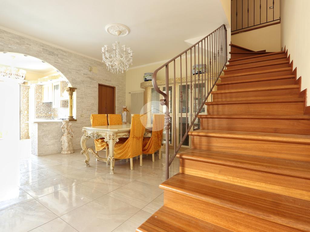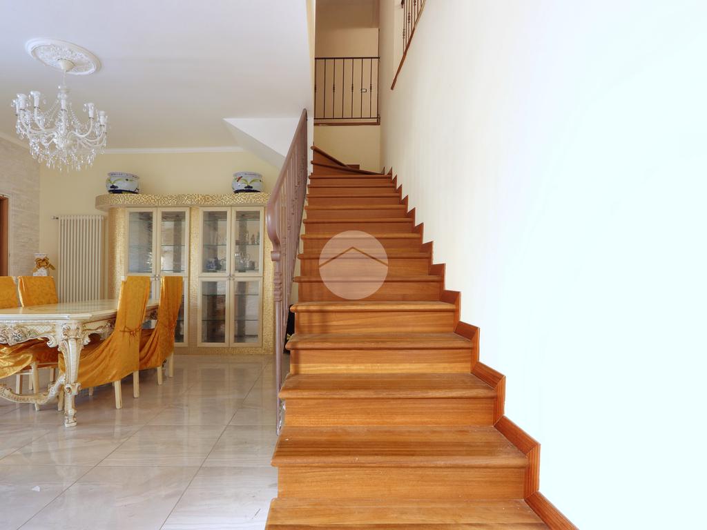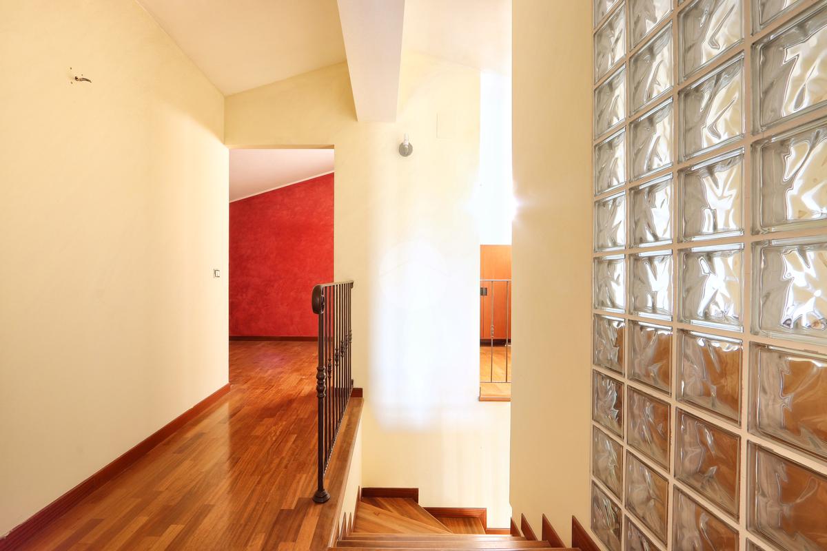Una scalinata rivestita in legno accompagna al piano secondo dove trovano spazio due camere matrimoniali, una delle quali con cabina armadio, camera doppia, bagno con vasca e ripostiglio. Inoltre la zona notte è caratterizzata da un salottino, uno spazio versatile che può essere facilmente trasformato in una quarta camera da letto, adattandosi alle esigenze di spazio.