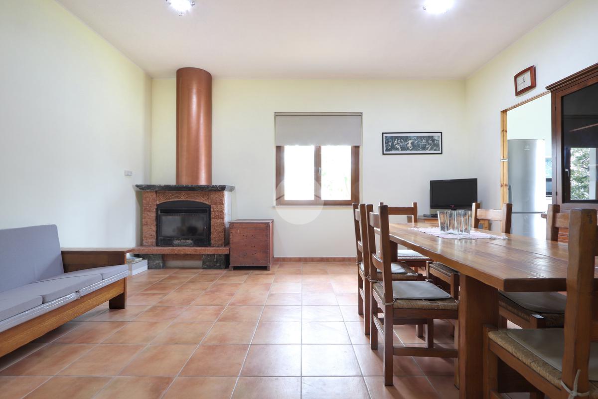 Il primo piano, accessibile attraverso una gradinata esterna, apre su un'accogliente zona giorno con camino, cucina a vista, ripostiglio e accesso sull'ampio terrazzo. La zona notte dispone di tre camere matrimoniali e un bagno con doccia.