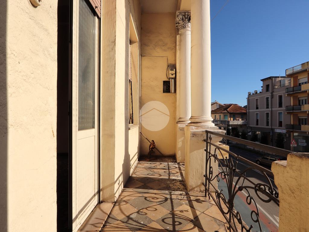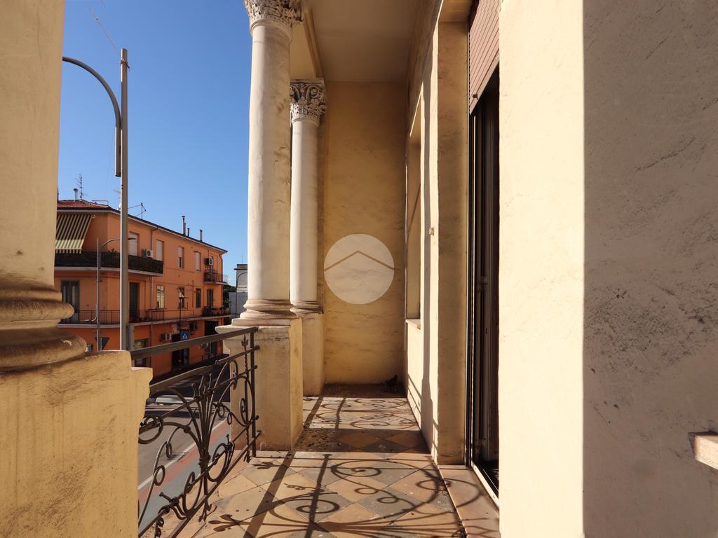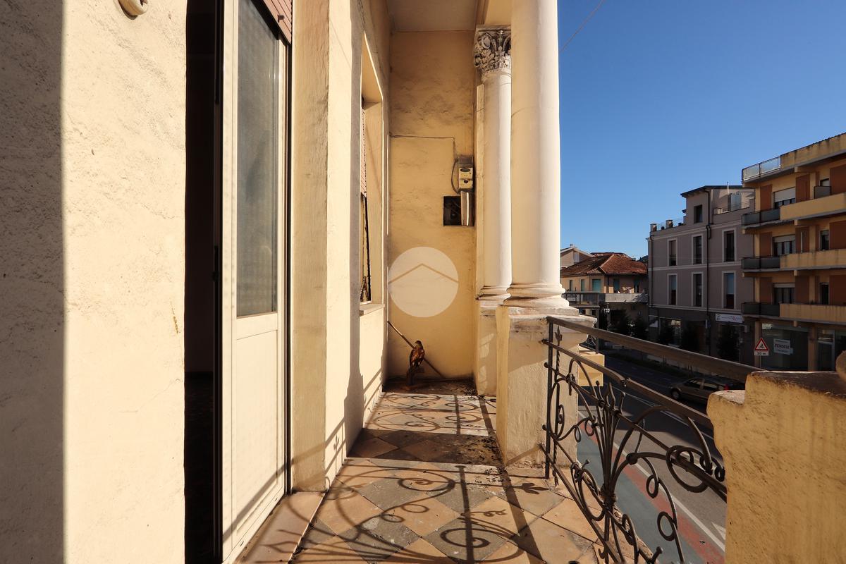 L’immobile si distingue per il suo balcone loggiato con eleganti colonne risalenti agli anni ‘40 con affaccio diretto su Corso Umberto I.