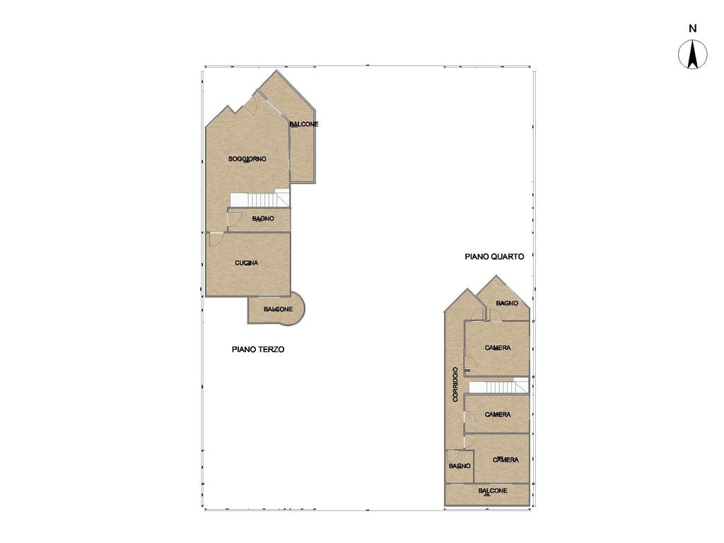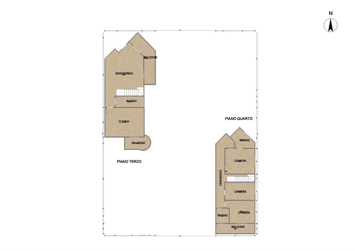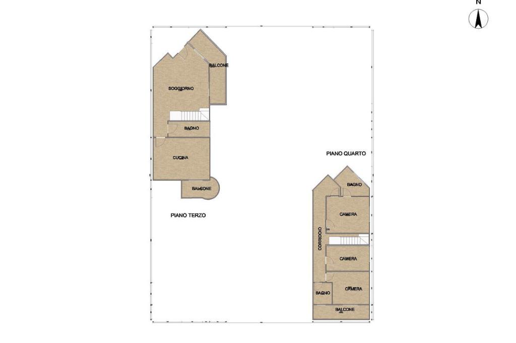 Da una scala in legno, è possibile accedere al quarto livello, in cui trovano spazio un'ampia camera padronale con cabina armadio e bagno privato finestrato e con vasca. Completano la zona notte due camere singole, una delle quali con terrazzino, bagno principale con doccia e pratico ripostiglio.